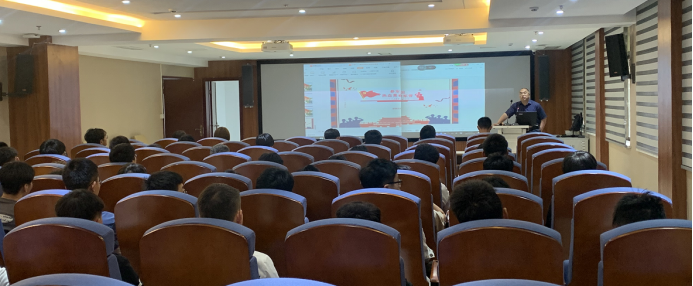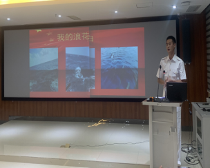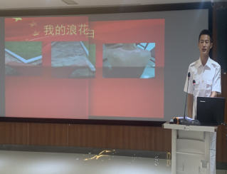 随后,海军退伍大学生赵绍俊分享了他本人缤纷多彩的军旅生活及心中的白浪花。他从征兵入伍的初衷、军旅生活、自己的改变等方面为大家讲述了他军旅生涯的深刻经历。从一个军训强度都难以接受的学生成长为获得多次嘉奖的一名海军军人,军旅生活让他得到了锻炼与成长,是军队给他的青春增添了别样的绚丽。赵绍俊回顾了自己在部队的那段激情燃烧的岁月,生动形象地讲述了在部队的生活和训练的点点滴滴。他结合部队的经历与心得体会,勉励同学们要厚植家国情怀,笃行报国之志,珍惜同学情谊,珍惜现在的幸福美好生活。“青春有很多样子,我庆幸我的青春有穿军装的样子!”赵绍俊骄傲并幸福地说。赵绍俊激情澎湃的语言和真挚的部队情感展示了新时代大学生士兵的精神风貌,赢得了大家的阵阵掌声。之后,同学们和赵绍俊进行了互动交流,了解军营的生活及入伍的相关要求。